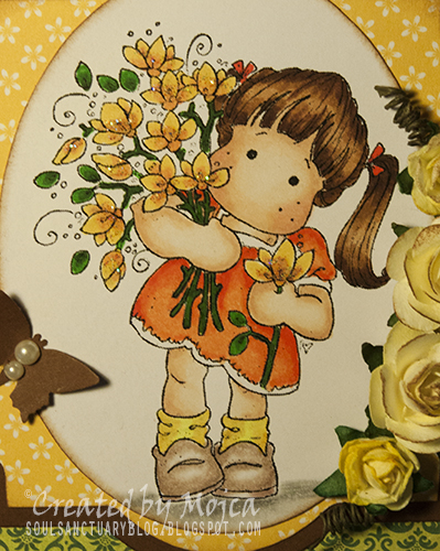 Hi ladies! This time I have a more yummy card to share with you. This little cutie is a LOTV stamp Rosie with cake. Well to be honest this was my first attempt to colour with Distress markers :))) what do you think? I think its' not sooooooo bad :) Well the coloured image was just waiting there in the drawer for some time now so I decided to use it after all. And also LOTV is celebrating their 9th birthday so they prepared a little competition for us and guess what, you can win 9 stamps of your choice. All you have to do is make a birthday cars. I am also entering the card in Stempeleinmaleins challenge which is sketch (you can find it at the bottom of this post) and spring theme. Isn't that great. So here is my little card....