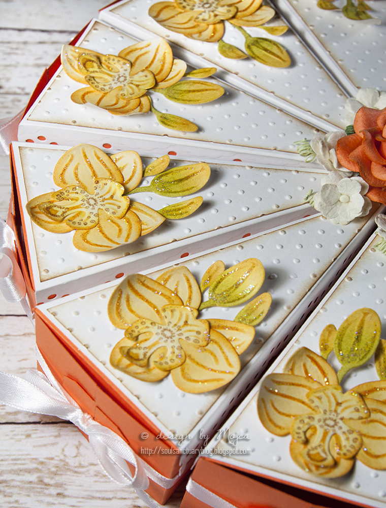This would be quite a nice anniversary, right? But unfortunately it isn't ... it's a card for celebration of joint birthdays of two man who are 40 + 70 years old ;) the card opens as a door and is hold together by a bow. I wonder how the two of them will divide it among each other :D